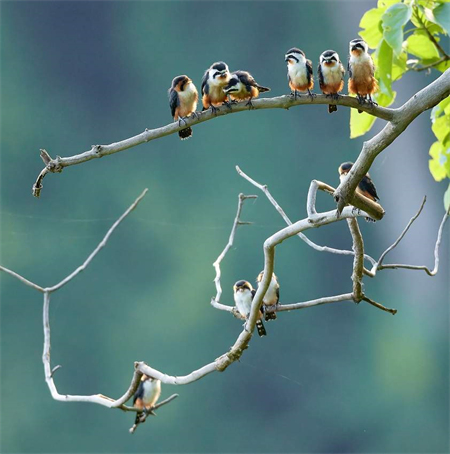Ces derniers jours, des photographes écologiques ont capturé 12 fauconneaux à pattes rouges sur une même photo dans le comté de Yingjiang de la préfecture de Dehong, dans la province du Yunnan (sud-ouest de la Chine). Dans l'image, ces fauconneaux à pattes rouges se tenaient debout ou peignaient leurs plumes les uns les autres, et parfois ils tiraient des papillons et jouaient avec leurs compagnons.