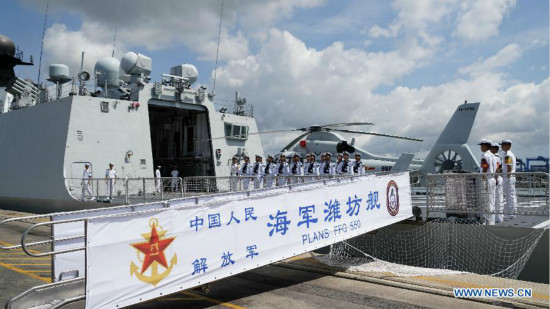 La frégate lance-missiles Weifang de la 33e flotte d'escorte de la Marine de l'Armée populaire de libération (APL) de Chine est arrivée dimanche matin au port de Mombasa, au Kenya, pour un accostage technique.