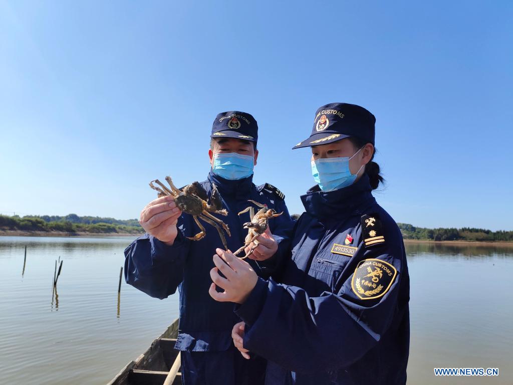 Les crabes ont été élevés dans le lac Dongting, le deuxième plus grand lac d'eau douce en Chine, selon les douanes locales.