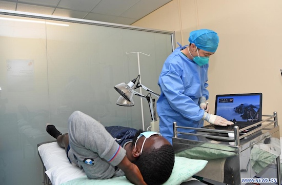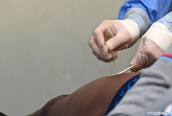 Un malade re?oit un traitement par acupuncture à l'h?pital d'Etat Katutura à Windhoek, en Namibie, le 17 juin 2022. (Xinhua/Chen Cheng)