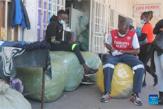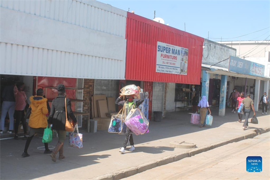Des gens vus dans la rue Haskins, chargés de produits chinois à Francistown, au Botswana, le 28 juillet 2022. (Shingirai Madondo / Xinhua)