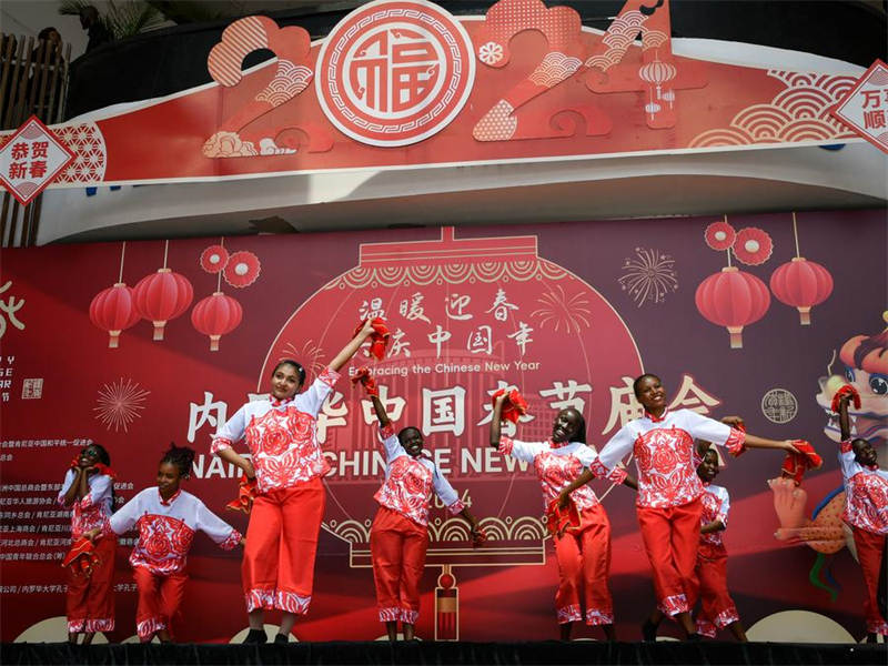 | Danse traditionnelle chinoise lors du gala du Nouvel An chinois à Nairobi, au Kenya, le 10 février 2024. (Xinhua/Han Xu) |