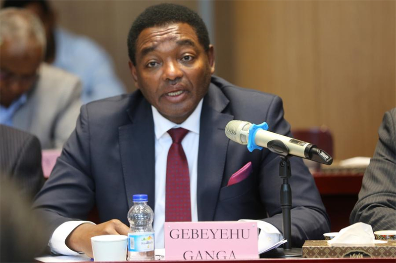 | Gebeyehu Ganga, directeur général des affaires du Moyen-Orient, de l'Asie et du Pacifique au ministère éthiopien des Affaires étrangères, s'exprime lors d'un symposium sur l'Initiative la Ceinture et la Route (ICR) à Addis-Abeba, en Ethiopie, le 20 mars 2024. (Xinhua/Zheng Lihao) |