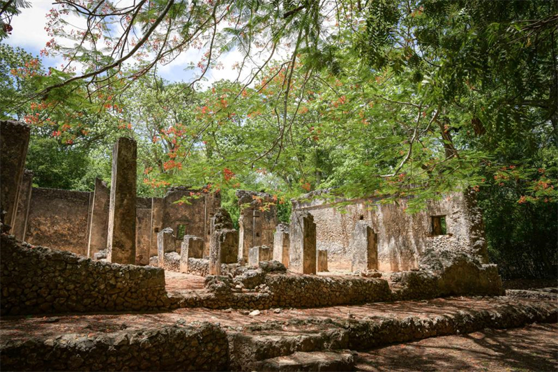 La ville historique de Gedi dans la région c?tière du Kenya a été inscrite sur la Liste du patrimoine mondial par l'Organisation des Nations Unies pour l'éducation, la science et la culture (UNESCO), ont annoncé samedi les Musées nationaux du Kenya (NMK). Photos prises le 15 avril 2023 montrant une vue des ruines de Gedi dans le comté de Kilifi, au Kenya.?