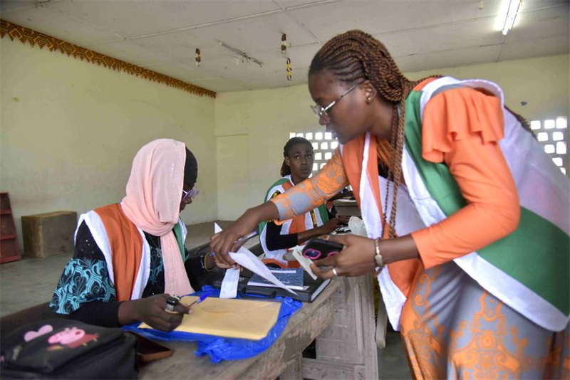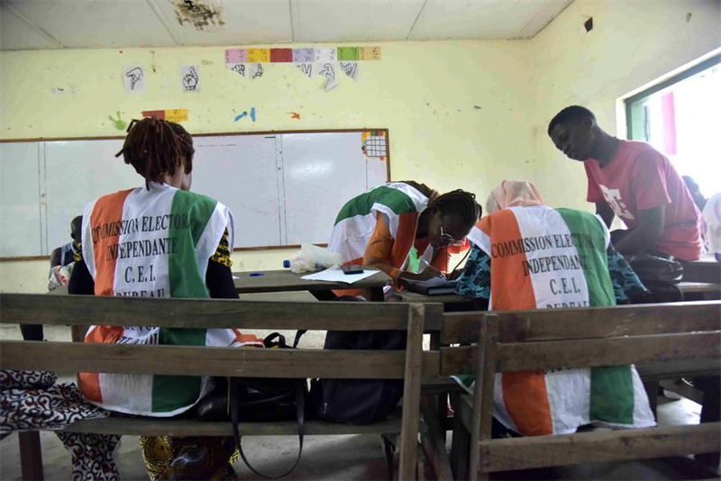 | Des membres du personnel enregistrent les informations des électeurs dans un centre d'inscription à Abidjan, en C?te d'Ivoire, le 22 octobre 2024. (Xinhua/Yvan Sonh) |