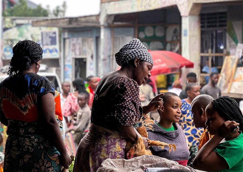 | Cette photo prise par un téléphone mobile le 1er février 2025 montre des vendeuses faisant le commerce de poulets dans un marché de rue à Goma, dans la province du Nord-Kivu, en République démocratique du Congo (RDC). (Xinhua/Zanem Nety Zaidi) |