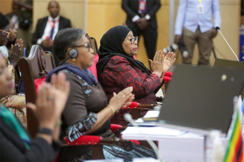 | La présidente tanzanienne Samia Suluhu Hassan (1ère à droite) assiste à la session d'ouverture du sommet des chefs d'Etat et de gouvernement de la Communauté de l'Afrique de l'Est (EAC) et de la Communauté de développement de l'Afrique australe (SADC) à Dar es Salaam, en Tanzanie, le 8 février 2025. Les dirigeants africains ont appelé samedi à un "cessez-le-feu immédiat" dans l'est de la République démocratique du Congo (RDC) et ont réaffirmé leur soutien total à la recherche d'une solution durable au conflit en cours. (Xinhua/Emmanuel Herman) |