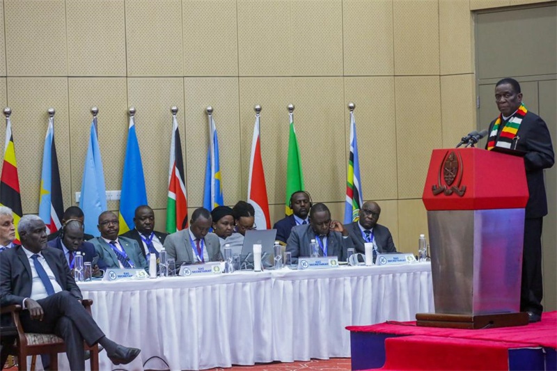 | Le président zimbabwéen Emmerson Mnangagwa (1er droite) assiste à la session d'ouverture du sommet des chefs d'Etat et de gouvernement de la Communauté de l'Afrique de l'Est (EAC) et de la Communauté de développement de l'Afrique australe (SADC) à Dar es Salaam, en Tanzanie, le 8 février 2025. Les dirigeants africains ont appelé samedi à un "cessez-le-feu immédiat" dans l'est de la République démocratique du Congo (RDC) et ont réaffirmé leur soutien total à la recherche d'une solution durable au conflit en cours. (Xinhua/Emmanuel Herman) |