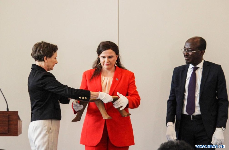 La ministre finlandaise des Sciences et de la Culture, Mari-Leena Talvitie, a remis officiellement le Kataklè, tabouret cérémoniel du royaume du Dahomey, à son homologue béninois du Tourisme, de la Culture et des Arts, Jean-Michel Abimbola, mardi à Cotonou, a constaté Xinhua sur place.
