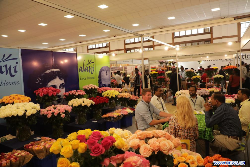 | Des exposants accueillent les visiteurs lors de l'Exposition internationale du commerce de floriculture 2025 (International Floriculture Trade Expo 2025) à Nairobi, au Kenya, le 5 juin 2025. (Xinhua/Fred Mutune) |
