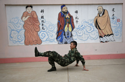 | Un étudiant exécute une danse lors d'une pause au Centre de Formation Qide, à Beijing le 26 février 2014. [Photo / agences] |