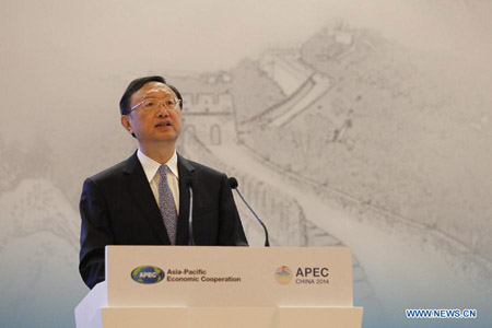 M. Yang a fait ces remarques lors de la cérémonie d'ouverture de la troisième réunion des hauts responsables de l'APEC à Beijing.