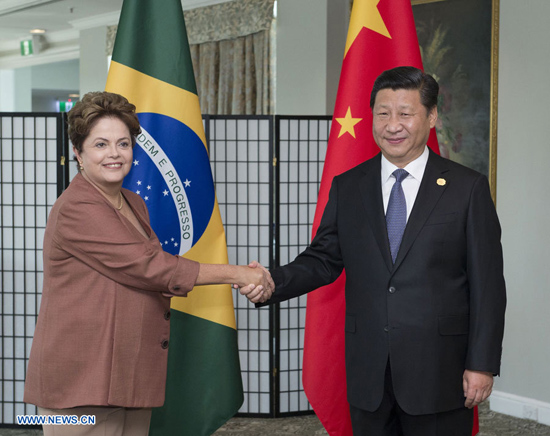 Le président chinois Xi Jinping a rencontré son homologue brésilienne Dilma Rousseff dimanche à Brisbane, appelant à la réalisation rapide de progrès substantiels dans la coopération sino-brésilienne dans le secteur ferroviaire.