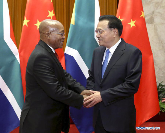 Cet engagement a été pris lors de la rencontre entre le Premier ministre chinois Li Keqiang et M. Zuma.
