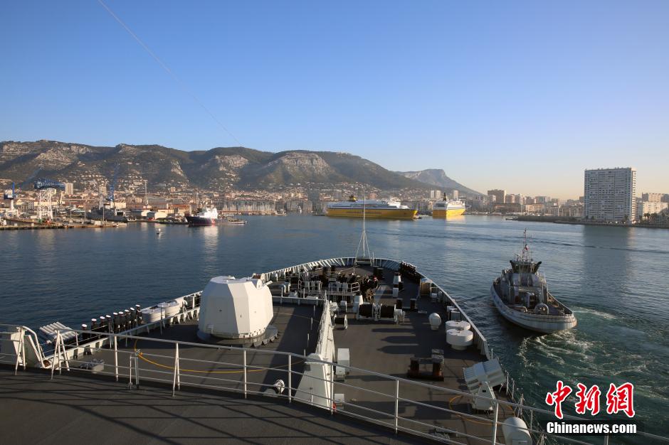 Lundi 9 février dans la matinée, la 18e flotte d'escorte de la marine chinoise accompagnée de la frégate fran?aise l'aviso ? Commandant Biro ?, a fait son entrée dans le port militaire de Toulon pour une visite officielle de quatre jours.