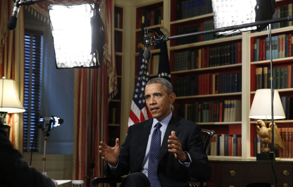 Photo: le président américain Barack Obama, lors d'une interview accordée à Reuters dans la bibliothèque de la Maison Blanche à Washington, le 2 mars 2015. [Photo/Agences]