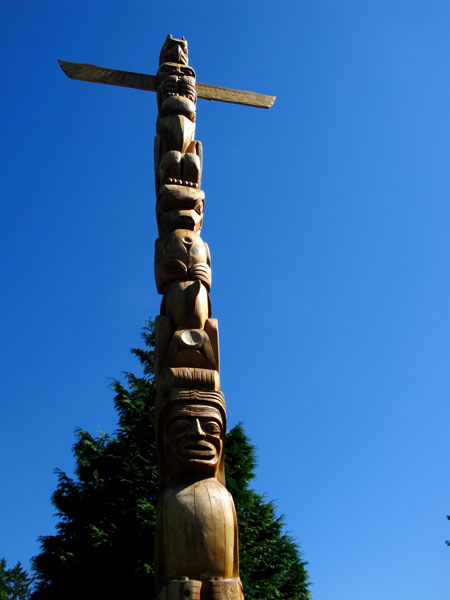 | Un totem visible dans le parc Stanley à Vancouver, Colombie-Britannique, Canada. [Photo:LuoWengang/Asianewsphoto] |
