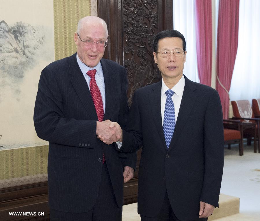 Le vice-Premier ministre chinois Zhang Gaoli a rencontré mardi à Beijing l'ancien secrétaire américain au Trésor Henry Paulson.