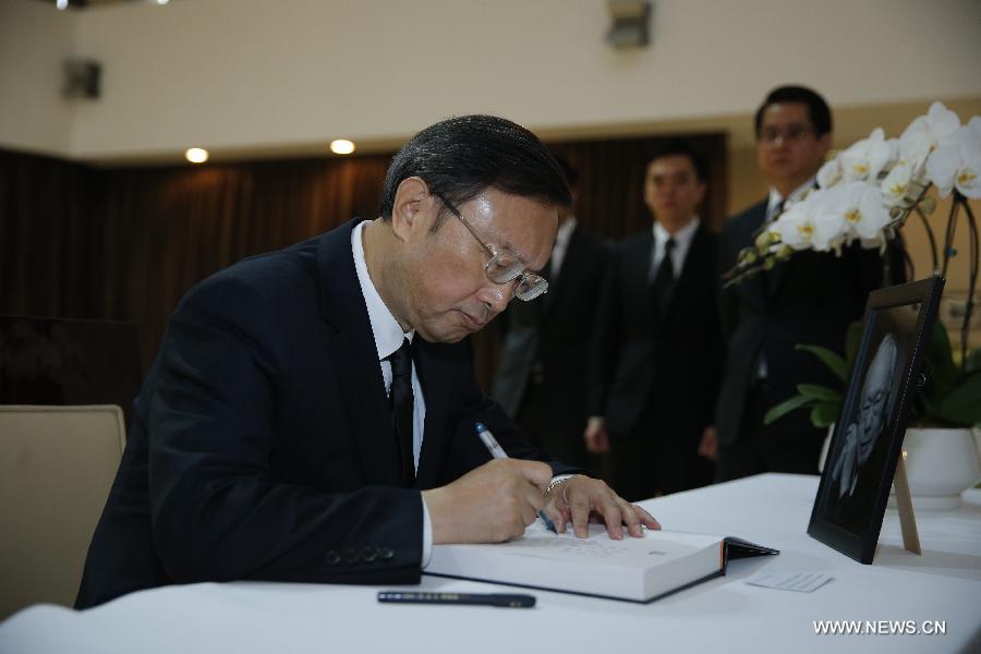Le conseiller d'Etat chinois Yang Jiechi a rendu hommage à l'ancien Premier ministre singapourien Lee Kuan Yew jeudi à l'ambassade de Singapour en Chine.