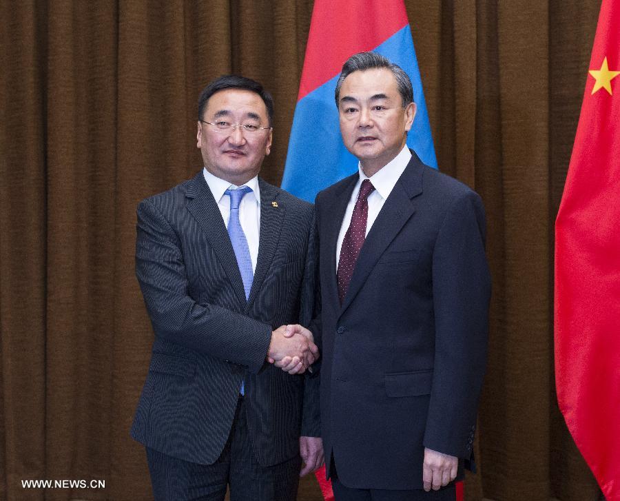 Le ministre chinois des Affaires étrangères Wang Yi s'est entretenu mercredi avec son homologue mongol Lundeg Purevsuren, ils se sont engagés à travailler ensemble sur les commémorations du 70e anniversaire de la fin de la Seconde Guerre mondiale.
