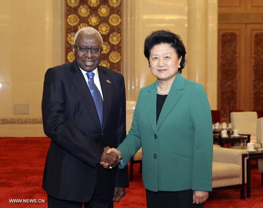La vice-Première ministre chinoise Liu Yandong a rencontré jeudi le président de l'Association internationale des fédérations d'athlétisme (IAAF), Lamine Diack, avant l'ouverture des Championnats du monde d'athlétisme Beijing 2015 en ao?t prochain.