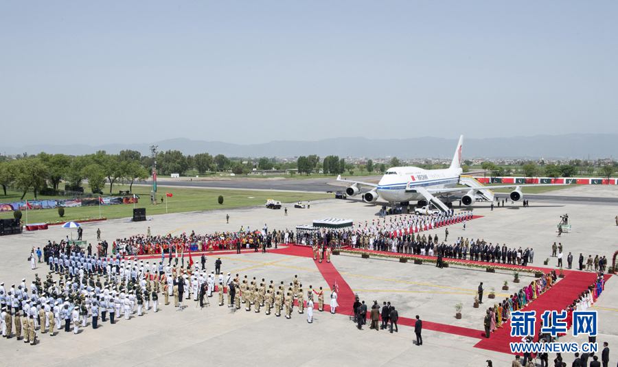 Le 20 avril 2015, arrivée du président Xi Jinping à Islamabad pour une visite d'Etat, avec une cérémonie de bienvenue à l'aéroport. (Photo : Agence Xinhua/Wang Ye)