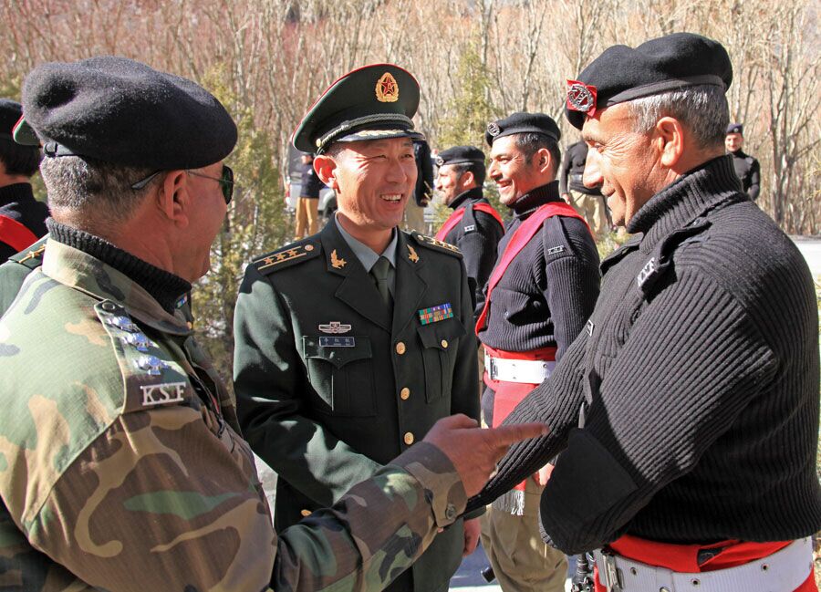 Li Hongrui, chef du poste de contr?le frontalier de Khunjerab, rencontre les forces de sécurité pakistanaises. [Photo Wang Lie / China Daily]