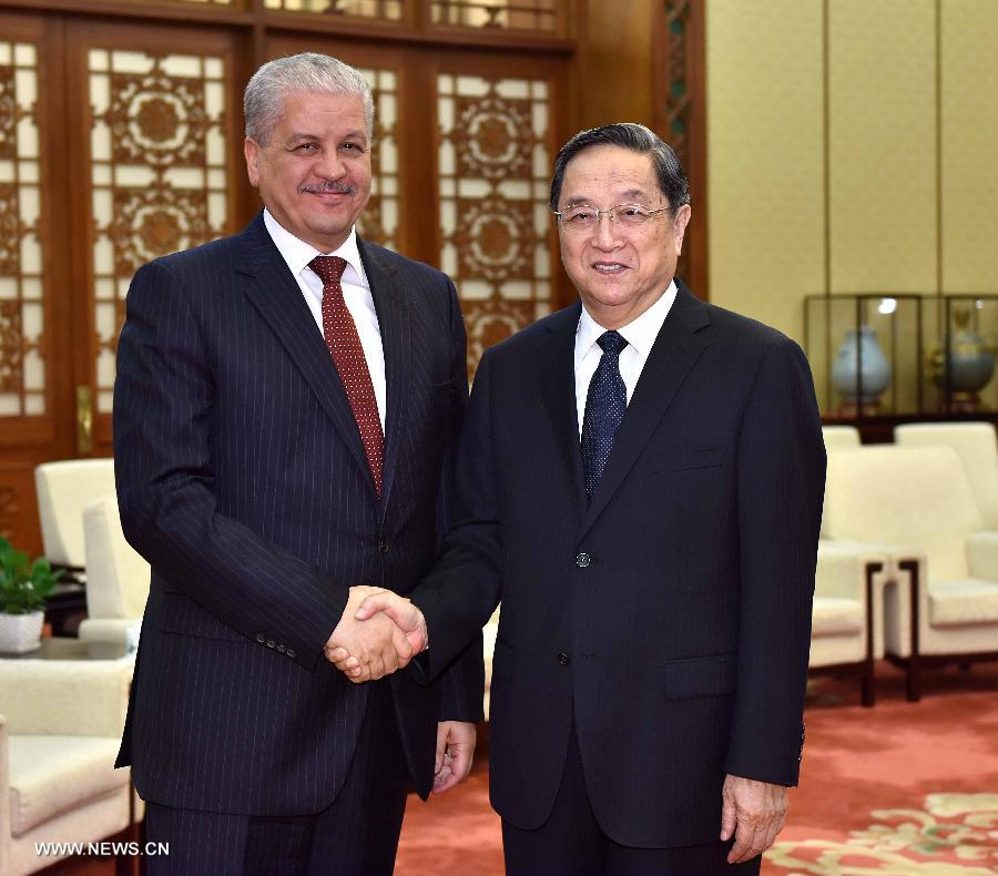 Le plus haut conseiller politique chinois Yu Zhengsheng a rencontré mardi à Beijing le Premier ministre algérien Abdelmalek Sellal, s'engageant à promouvoir le partenariat stratégique global entre les deux pays.