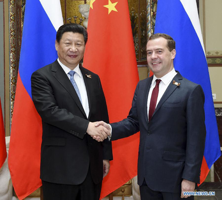 Le président chinois Xi Jinping s'est entretenu samedi à Moscou avec le Premier ministre russe Dmitry Medvedev après avoir assisté à la parade de la Journée de la victoire marquant le 70e anniversaire de la victoire de la Grande Guerre patriotique, terme utilisé par la Russie pour parler de la Seconde Guerre mondiale.