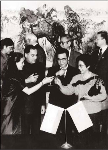 L'ancien Premier ministre indien Rajiv Gandhi et son homologue chinois Li Peng en décembre 1988 à Beijing.