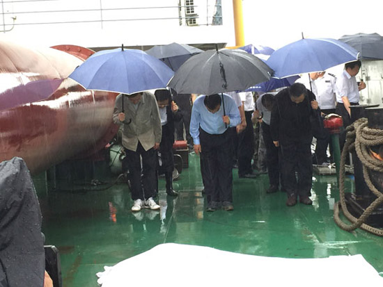| Le Premier ministre Li Keqiang (au centre) se prosterne devant les corps des victimes de la pire catastrophe maritime enregistrée sur le fleuve Yangtsé. [chinadaily.com.cn] |