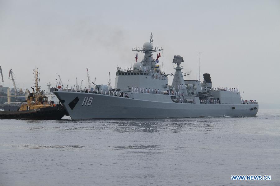 Photo prise le 20 ao?t 2015 montrant le destroyer Shenyang lors de la manoeuvre "Joint Sea-2015 (II)" à Vladivostok, en Russie. La manoeuvre, "Joint Sea-2015 (II)" selon son nom de code, sera effectuée du 20 au 28 ao?t dans le golfe de Pierre-le-Grand, les eaux au large du cap Clerk, dans et au-dessus de la mer du Japon. Il s'agit du deuxième exercice naval Chine-Russie effectué cette année. (Xinhua/Sun Yanxin)