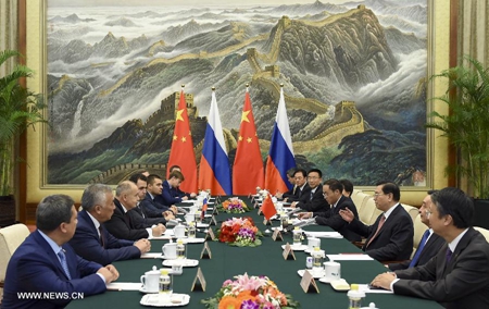 Zhang Dejiang a évoqué les trois rencontres organisées depuis le début de l'année entre le président Xi Jinping et son homologue russe, Vladimir Poutine, expliquant que celles-ci avaient guidé le développement sain et de haut niveau du partenariat global bilatéral de coopération stratégique.