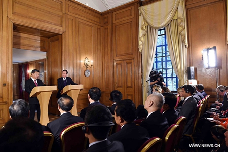 Les deux pays vont ouvrir un age d'or de relations sino-britanniques durables, ouvertes et gagnant-gagnant, et créeront conjointement un meilleur avenir pour les relations bilatérales, a expliqué le président chinois Xi Jinping dans une conférence de presse commune avec le Premier ministre britannique David Cameron à l'issue de leur rencontre.