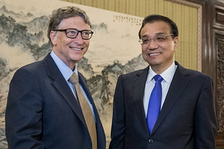 Photo : rencontre entre le Premier ministre chinois Li Keqiang et Bill Gates, fondateur de Microsoft et président de Terra Power, à Beijing, le 12 novembre 2015. (Photo/China Daily)