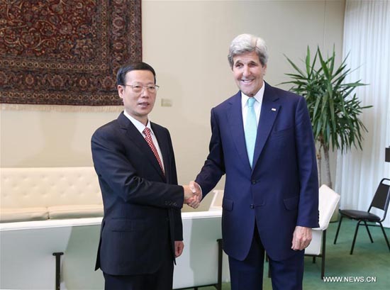 Lors de son entretien avec John Kerry, M. Zhang a évoqué la rencontre réussie du 31 mars entre le président Xi et son homologue américain Barack Obama en marge du 4e Sommet sur la sécurité nucléaire à Washington, ajoutant que les deux parties devraient se préparer pour les prochains réunions et dialogues bilatéraux de haut niveau de cette année afin d'obtenir davantage de résultats positifs.