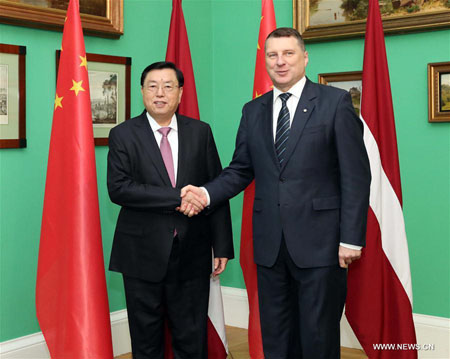 Au cours d'une rencontre avec le président letton, Raimonds Vejonis, M. Zhang a salué le développement stable des relations bilatérales entre les deux pays, particulièrement depuis le 25e anniversaire de l'établissement des relations bilatérales l'année dernière.