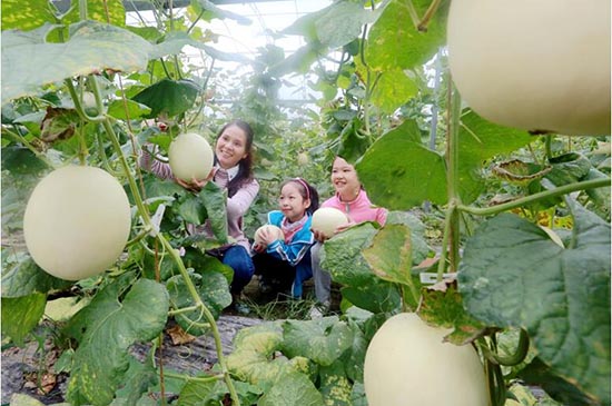 Des visiteurs choisissent des melons de Hami de la variété ? Xueli ?, dans le parc de démonstration agricole du canton de Shuibian, dans le comté de Xiajiang de la province du Jiangxi. (Le Quotidien du peuple en ligne.)