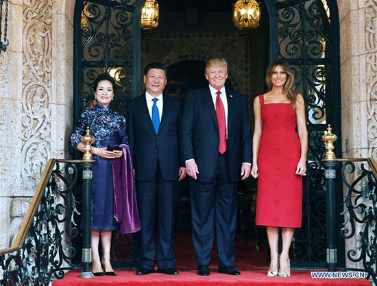 Xi Jinping et son épouse Peng Liyuan posent pour une photo avec le président américain Donald Trump et son épouse Melania Trump, à Mar-a-Lago, en Floride, aux Etats-Unis, le 6 avril 2017. (Xinhua/Rao Aimin)
