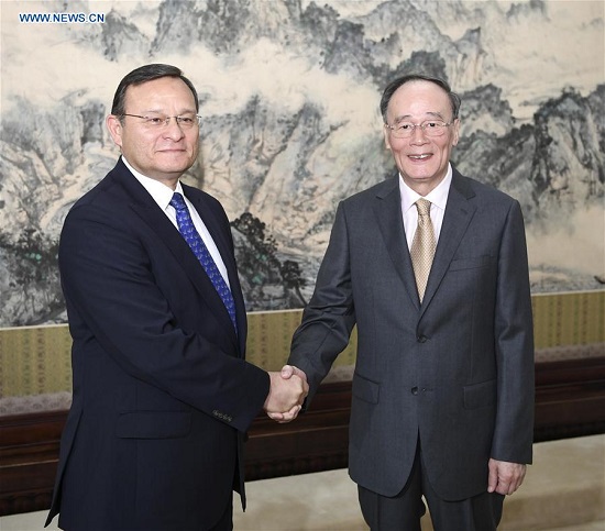 Le vice-président chinois Wang Qishan a rencontré lundi à Beijing le ministre péruvien des Affaires étrangères Nestor Francisco Popolizio Bardales, appelant les deux parties à considérer le développement de l'initiative "la Ceinture et la Route" comme une opportunité d'intérêt commun.