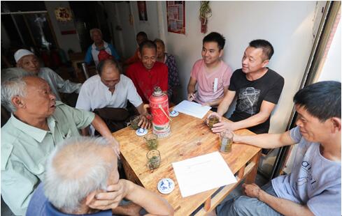 Photo : Dans le canton de Wadi de la ville de Zhalantun, dans la région autonome de Mongolie intérieure, un cadre de l'inspection et de la supervision de la discipline (le cinquième en partant de la gauche) et des compatriotes mongols étudient le ? Règlement sur les mesures disciplinaires du Parti communiste chinois récemment révisé ?, le 30 ao?t 2018. (Han Leng /vip.people.com.cn)