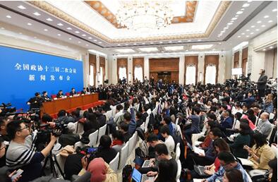 Le 2 mars, une conférence de presse a eu lieu au Grand Palais du Peuple de Beijing à l'occasion de la deuxième session du 13e Comité national de la Conférence consultative politique du peuple chinois. (Chen Yehua / Xinhua)