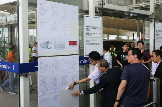 Certains manifestants organisent des rassemblements publics non autorisés à l'aéroport depuis le 9 ao?t et ont sérieusement entravé le fonctionnement de l'aéroport les 12 et 13 ao?t, provoquant de nombreuses annulations de vols.