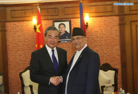 Au cours de sa rencontre avec le Conseiller d'Etat chinois et ministre des Affaires étrangères Wang Yi, le Premier ministre népalais K.P. Sharma Oli a déclaré que son pays était disposé à renforcer la coopération bilatérale entre les deux pays, et à faire progresser les relations sino-népalaises en travaillant conjointement à la mise en oeuvre de l'Initiative chinoise "la Ceinture et la Route" (ICR).
