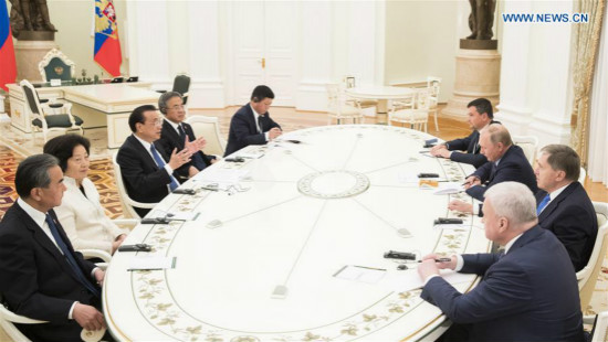 Le Premier ministre chinois Li Keqiang a rencontré mercredi le président russe Vladimir Poutine au Kremlin pour discuter des relations bilatérales.