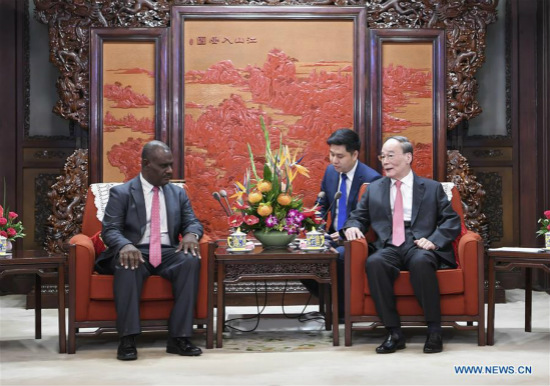 Le vice-président chinois Wang Qishan a rencontré le ministre des Affaires étrangères et du Commerce extérieur des ?les Salomon, Jeremiah Manele, lundi à Beijing.