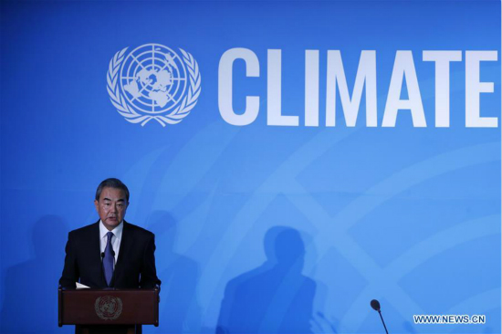 Travailler ensemble pour réagir au changement climatique concerne l'avenir de l'humanité, a déclaré lundi le représentant spécial du président chinois Xi Jinping, Wang Yi, lors du sommet d'Action Climat au siège des Nations Unies à New York.