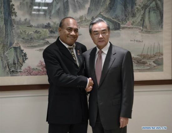 Le ministre chinois des Affaires étrangères Wang Yi s'est entretenu mercredi avec le président des Kiribati Taneti Maamau alors que les deux pays vont probablement normaliser leurs relations.