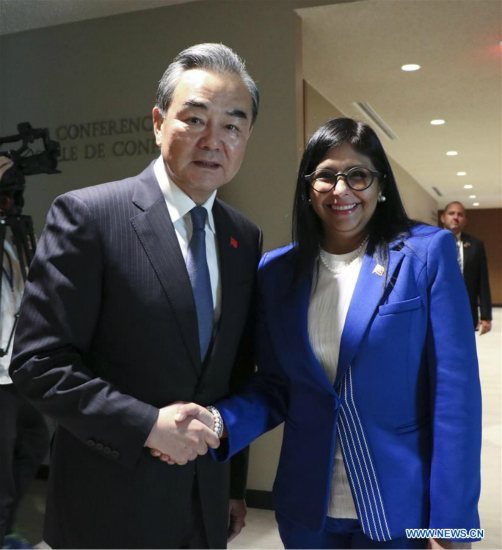 La Chine continuera de développer le partenariat stratégique global sino-vénézuélien dans une perspective à long terme, a-t-il déclaré lors d'un entretien avec la vice-présidente vénézuélienne Delcy Rodriguez en marge de la 74e session de l'Assemblée générale des Nations Unies.