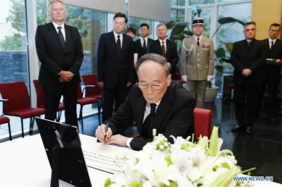 Le vice-président chinois, Wang Qishan, s'est rendu samedi à l'ambassade de France à Beijing pour exprimer ses condoléances après le décès de l'ancien président fran?ais Jacques Chirac, qui s'est éteint jeudi à l'age de 86 ans.